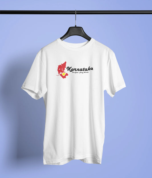Namma Karunadu Printed Tshirt | Unisex Karnataka Pride Tee | White, Royal Blue, Grey, Teal | ShirtlessClub - White