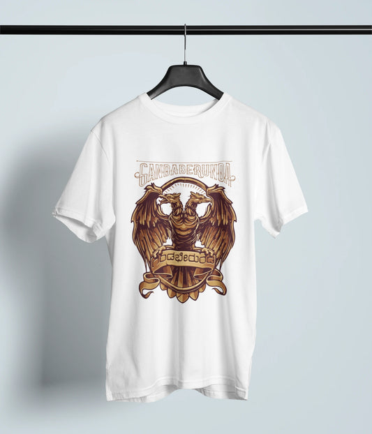 Gandaberunda Tshirt | Premium Unisex Kannada Symbol | Black, White, Green, Navy Blue | ShirtlessClub - White