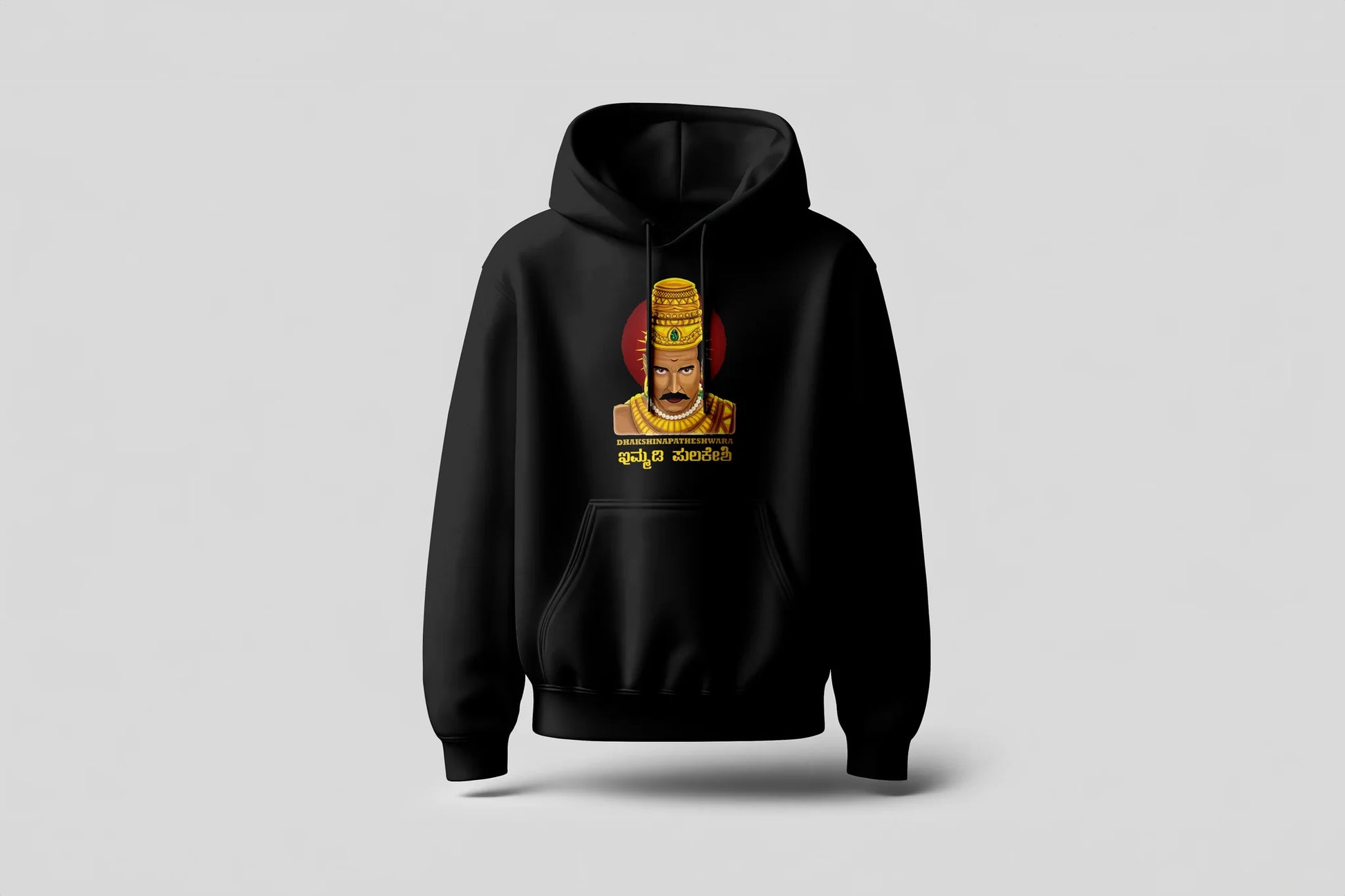 Celebrate Karnataka’s ancient royalty with the Dhakshinapatheshwara Immadi Pulakeshi Printed Hoodie—bold chest print, plush cotton fleece, antimicrobial comfort. Limited stock—order now!