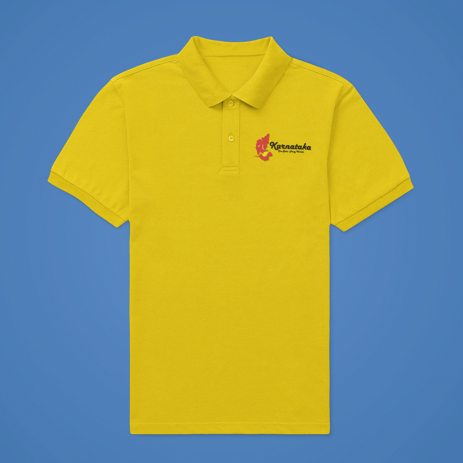 Show Karnataka pride with the "Karnataka One State Many World" Polo Tshirt. Black print on Yellow, White, Grey. Premium cotton, bio-washed. Perfect for office, trekking, and travel—order now!