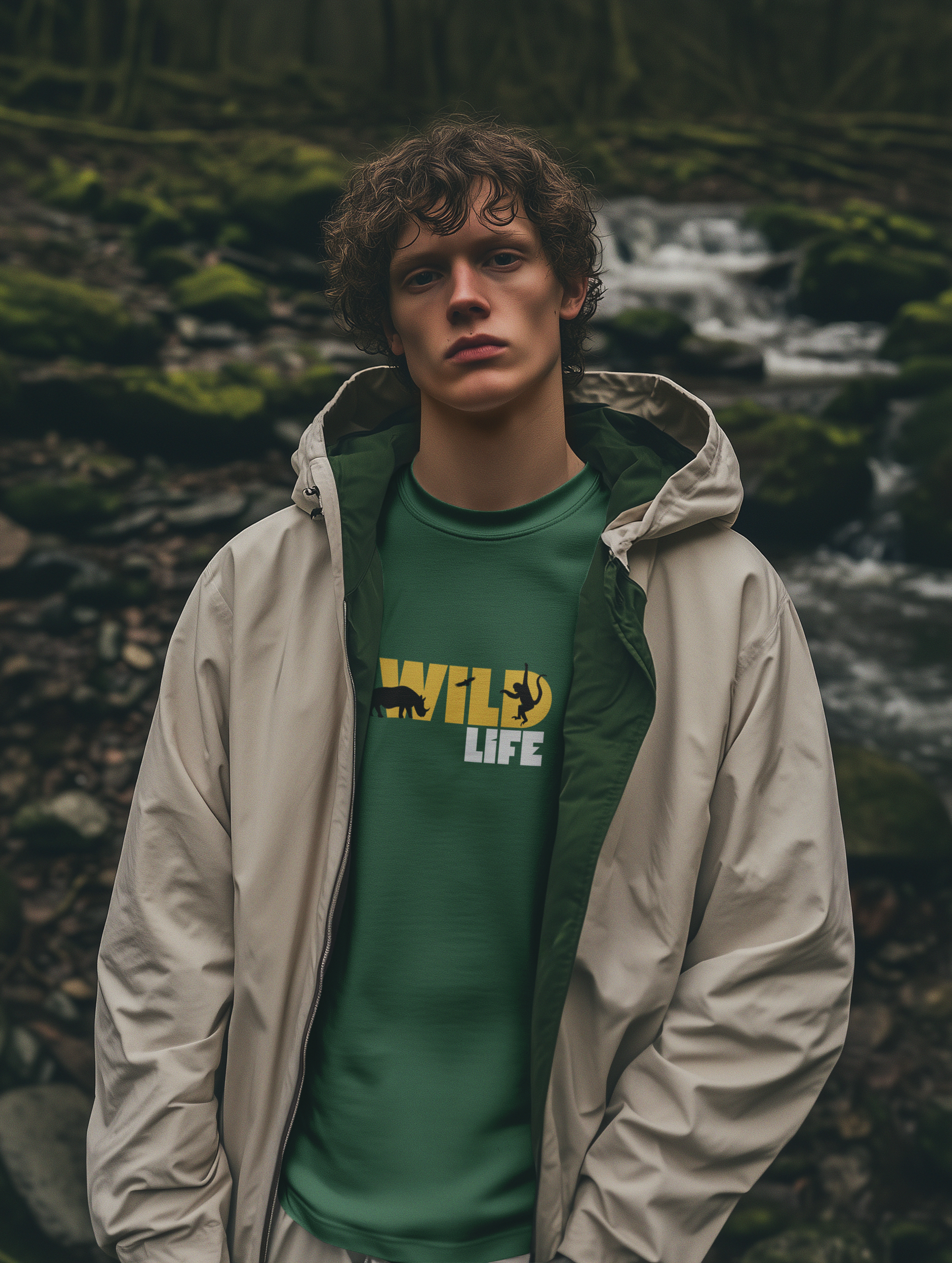 ShirtlessClub – Wild Life Adventure T-Shirt for Men | 100% Cotton | Bio-Washed & Durable – Black / Maroon / Green