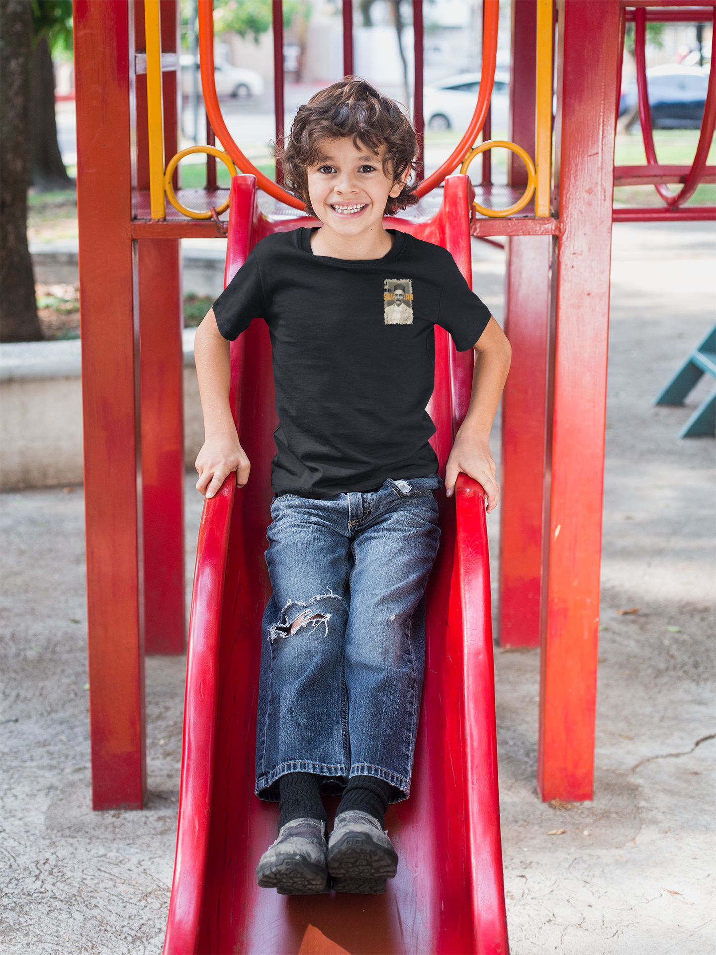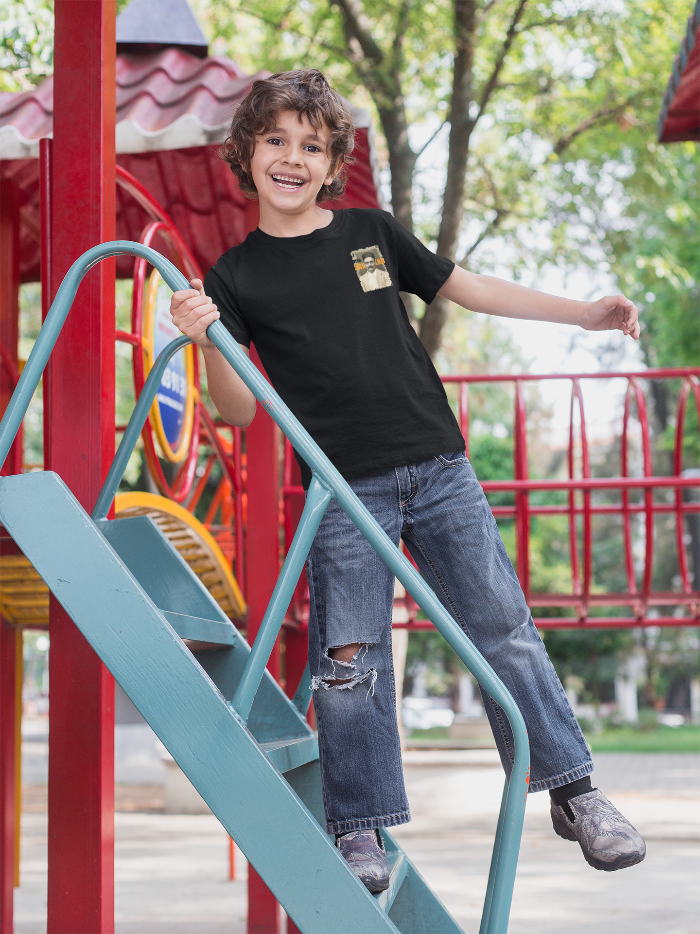 Celebrate patriotism with this black Veer Savarkar T-shirt for boys. Soft cotton with left chest print. Ideal for Independence Day, school events, and cultural functions.